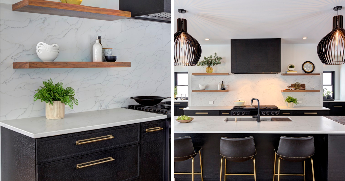 Drawn to the classic look of solid, black-and-white cabinets and countertops? This simple palette is perfect for making a bold statement with a colorful and patterned backsplash. The contrast will also keep your kitchen from feeling cluttered by drawing attention to the unique focal point of the room.